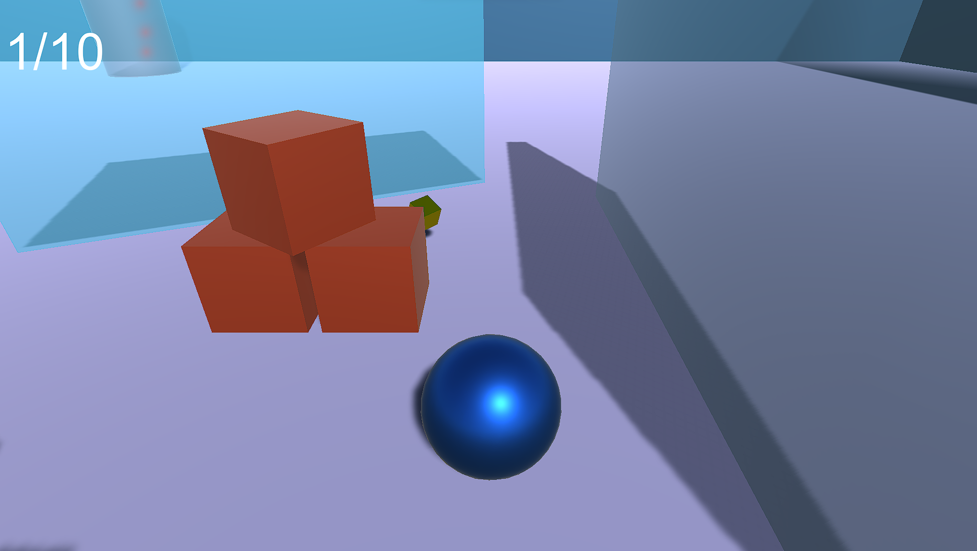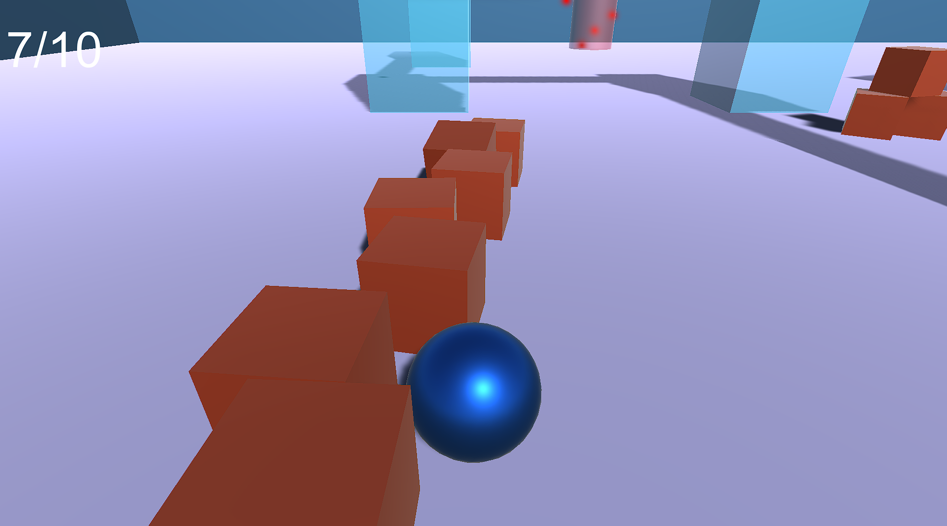 Ball Run is a simple 3D physics game. You control the ball, you need to collect 10 gold cubes and leave the level. In the game you can throw boxes and glass.