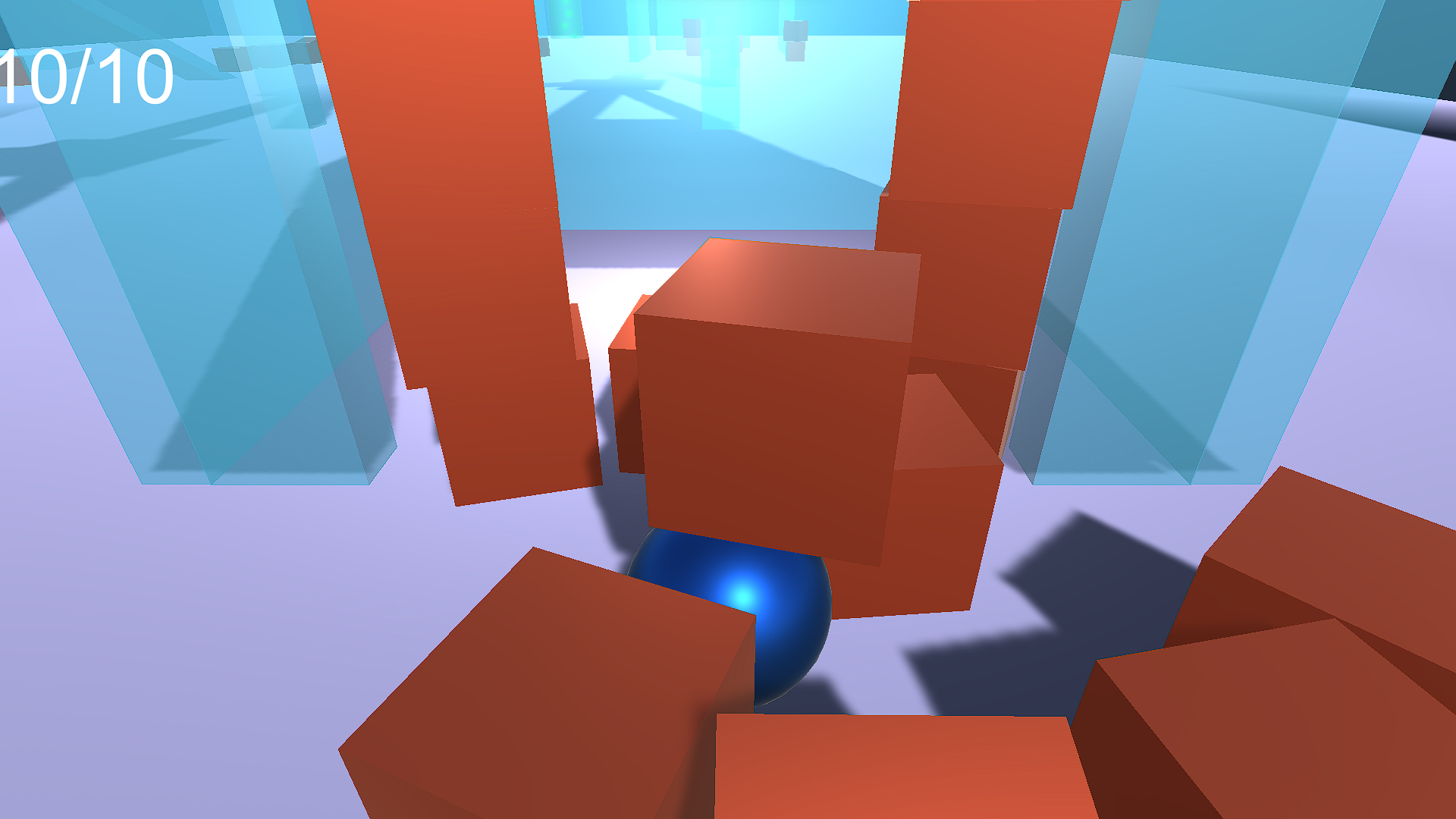 Ball Run - простая 3д игра с физикой. Ты управляешь мячом, тебе наобходимо собрать 10 золотых кубиков и покинуть уровень. В игре ты можешь раскидывать коробки и стёкла.